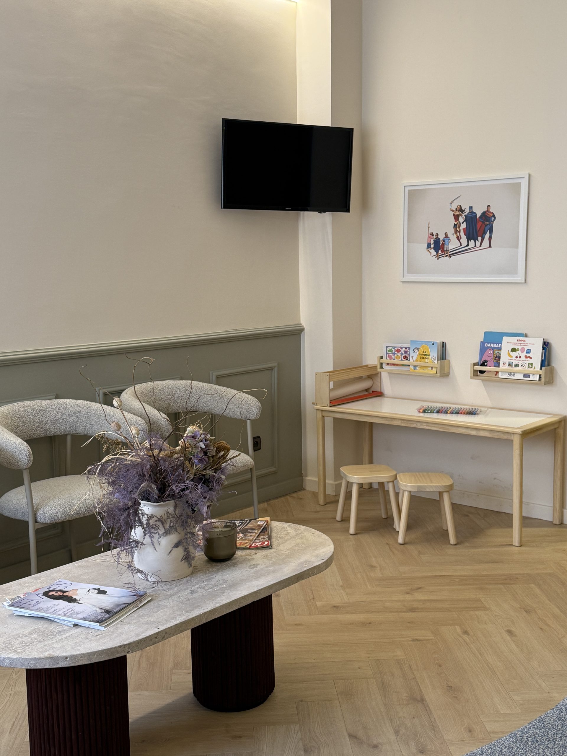 Notre cabinet a été conçu pour offrir un cadre chaleureux et rassurant. Des salles de consultation spacieuses et une salle d’attente conviviale permettent aux patients de se sentir à l’aise dès leur arrivée.